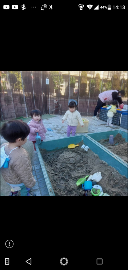 お砂遊び大好きでカップにお砂入れたり出したり🎶