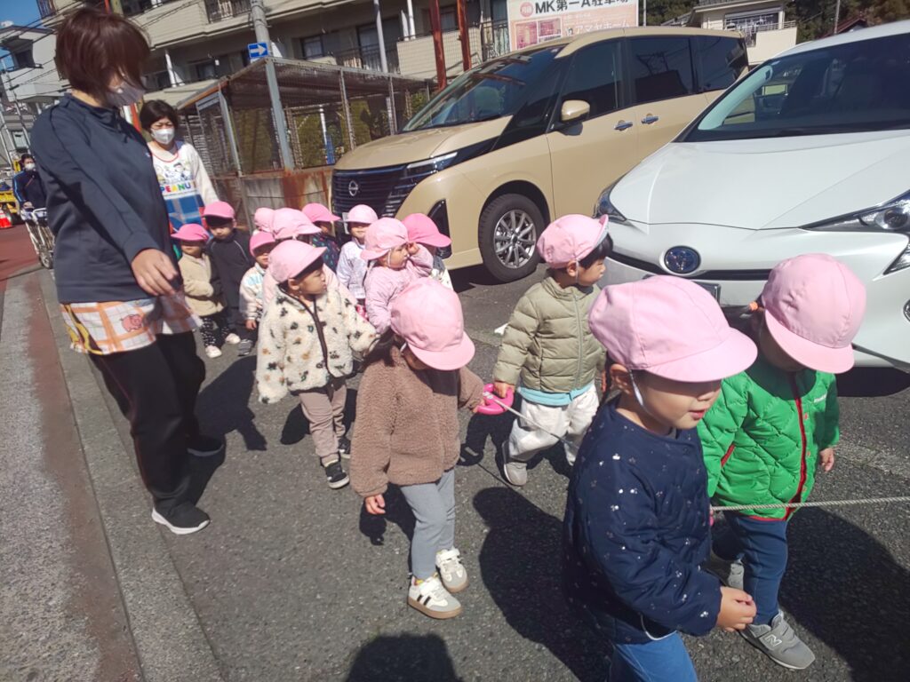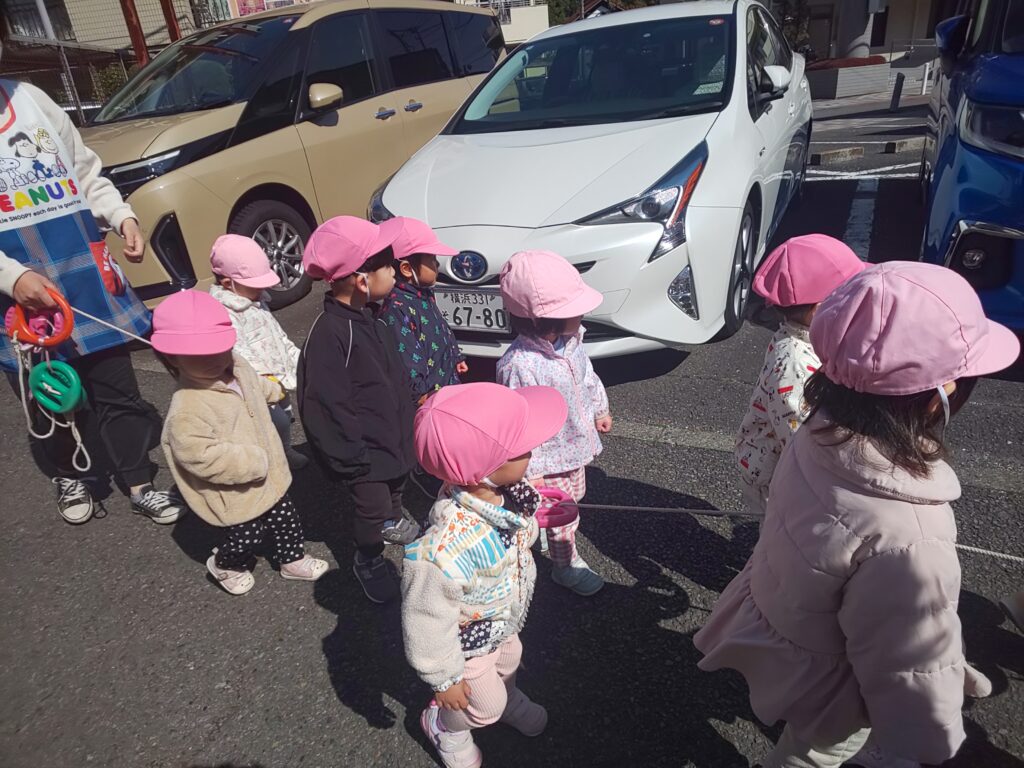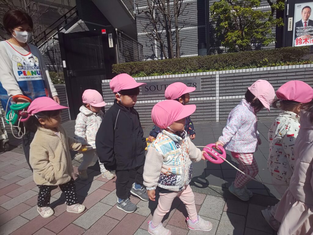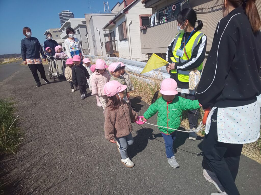 最近のりす組さんは進級に向けてお散歩の際に歩く練習をしています! 誘導ロープにしっかり掴まって、歌を口ずさんだり発見したものをお友だち同士でお話しして楽しく歩いています♪ DSC_0568 DSC_0569 DSC_0571 DSC_0572 DSC_0574